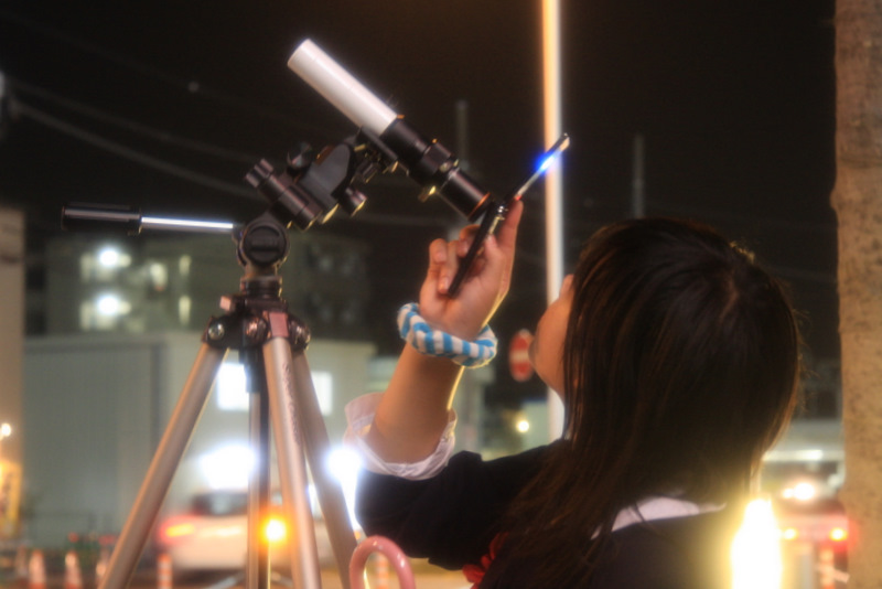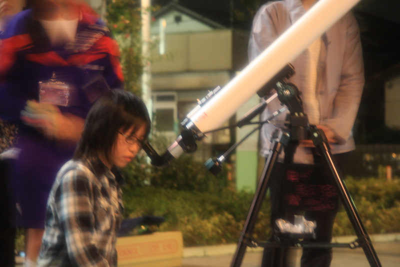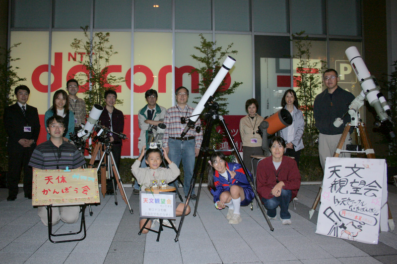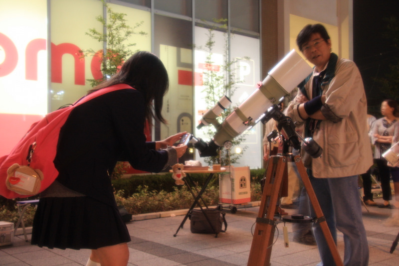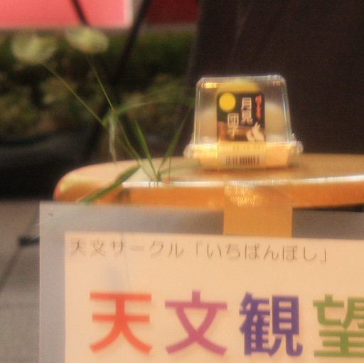 10月3日 中秋の名月観望会 2009年10月3日(土)鴻巣駅前で実施されたお月見の様子です。 恥ずかしがり屋の月が時折姿を見せます。 見えた! 家族で眺める 一瞬現れては、雲間に消える「木星」を追いかける。 みんなでゆっくり月を観ることが出来る、幸せ。幸せって何? 望遠鏡の数にゆとりがあったおかげで、一人ひとりに、心ゆくまでご覧いただけました。 雲のおかげでなかなか観られない。 でも、あきらめない。 望遠鏡を囲んでの四方山話 小さな望遠鏡でも、月はくっきり良く見えます。(雲が無ければ) 高校生たちは、ケータイやデジカメでコリメート撮影に挑戦 コリメートで狙う 其の壱 コリメートで狙う 其の弐(こっちはデジカメ) コリメートで狙う 其の参 UFOキャッチャーみたいに病みつきになる 皆で見上げる視線が素敵 きれい! お月見といえば、やはり団子。お月さんは食べられないし。。。 おなじみの集合写真です 共有: クリックして X で共有 (新しいウィンドウで開きます) X Facebook で共有するにはクリックしてください (新しいウィンドウで開きます) Facebook いいね 読み込み中… 関連