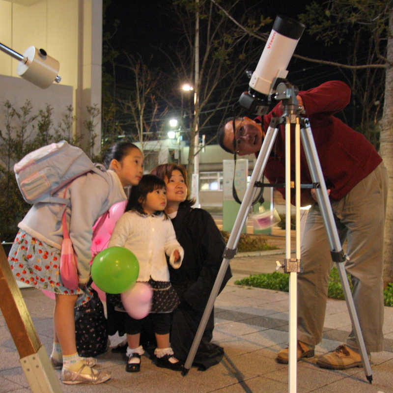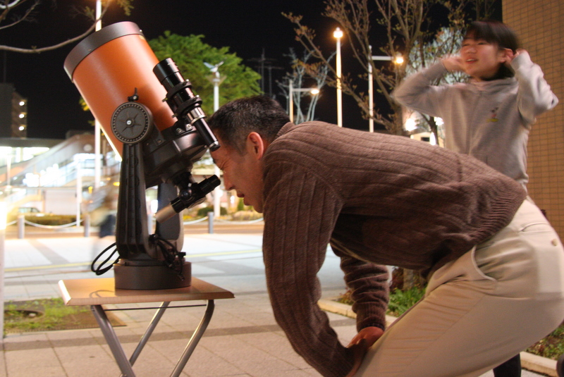 4月24日 駅前観望会 少し風が有りましたが、よく澄んだ空になりました。 後半は、時折雲にさえぎられながらも、たくさんの方々に月や土星、金星などをごらんいただく事ができました。 次回の観望会は、5月29日(土)、予備日30日(日)を予定しています。 共有: クリックして X で共有 (新しいウィンドウで開きます) X Facebook で共有するにはクリックしてください (新しいウィンドウで開きます) Facebook いいね 読み込み中… 関連