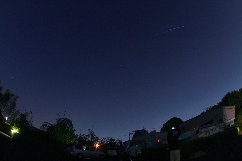 ISS(国際宇宙ステーション) 欲張って「固定」と「追尾」で撮ってみました。(撮影日は5/16です。) 左から右に飛んで行ったんですけど、良く見ると右の方がふたつに分かれています。 あとから調べて分かったのですが、下の暗いほうの線はドッキング前のスペースシャトル「アトランティス号」だったそうです。(撮影中は追尾に夢中で分からなかった・・・^^;) コンポジットの中の1枚だけ載せますね。 露出は10秒です。 上の明るい線がISS、下の暗い線がスペースシャトルです。 次は「追尾」です。 かなりトリミングして大きく見えるようにしてます^^; 初めて撮ったんですけど、面白くてクセになりそうです♪ 共有: クリックして X で共有 (新しいウィンドウで開きます) X Facebook で共有するにはクリックしてください (新しいウィンドウで開きます) Facebook いいね 読み込み中… 関連
