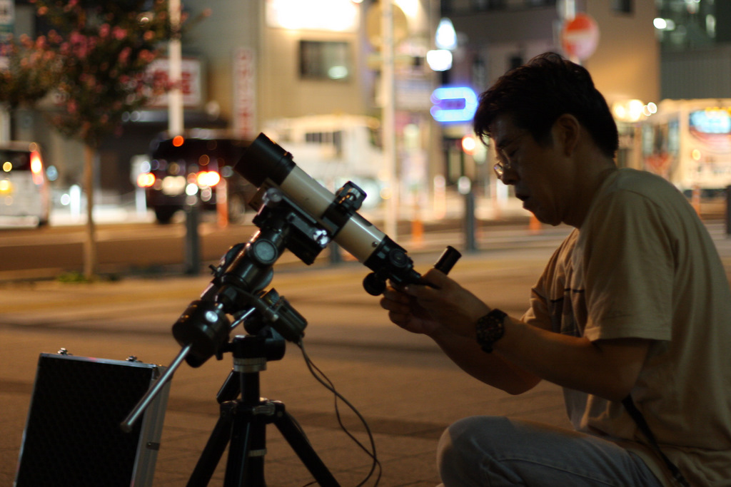 9月10日 駅前観望会 久々に良いコンディションで観望会ができました。 都内から、お二人の天文ファンも参加。(一人は関西で活動されている方) さらに、遠くアメリカから出張で来られていた方々も含め、たくさんの皆さんに月や天の川の様子をごらんいただきました。 共有: クリックして X で共有 (新しいウィンドウで開きます) X Facebook で共有するにはクリックしてください (新しいウィンドウで開きます) Facebook いいね 読み込み中… 関連