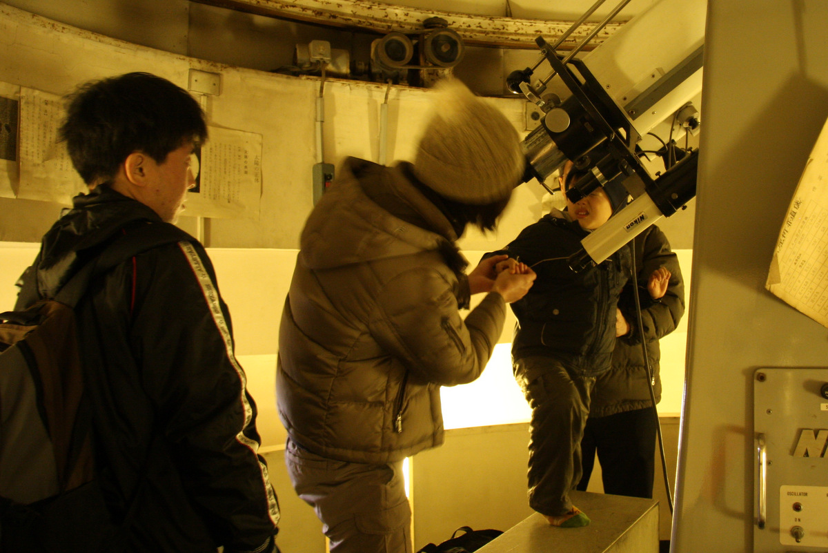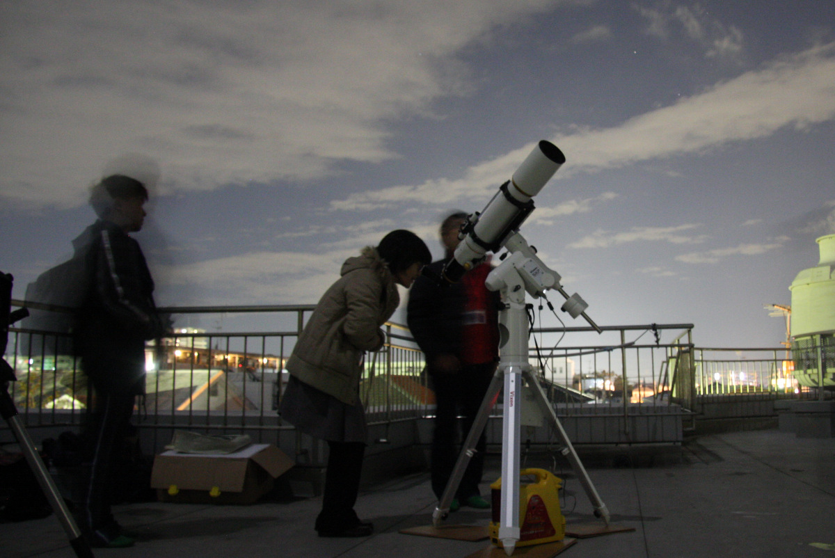 11月24日天文教室 テーマ:コペルニクス・クレーターと木星 2階プラネタリウム室内で三浦先生による解説のあと、3階ドームの望遠鏡(ニコン15cm屈折望遠鏡)と、屋上で「いちばんぼし」メンバーの望遠鏡や双眼鏡を覗いていただきました。 はじめは曇り空でしたが、次第に晴れあがりました。 木星の衛星や縞模様、月のクレータの様子など、細部にわたってとても良いコンディションで観測できました。 今回はいつもより人数が少な目でしたが、その分ひとりひとりゆとりをもって楽しんでいただけたと思います。 共有: クリックして X で共有 (新しいウィンドウで開きます) X Facebook で共有するにはクリックしてください (新しいウィンドウで開きます) Facebook いいね 読み込み中… 関連