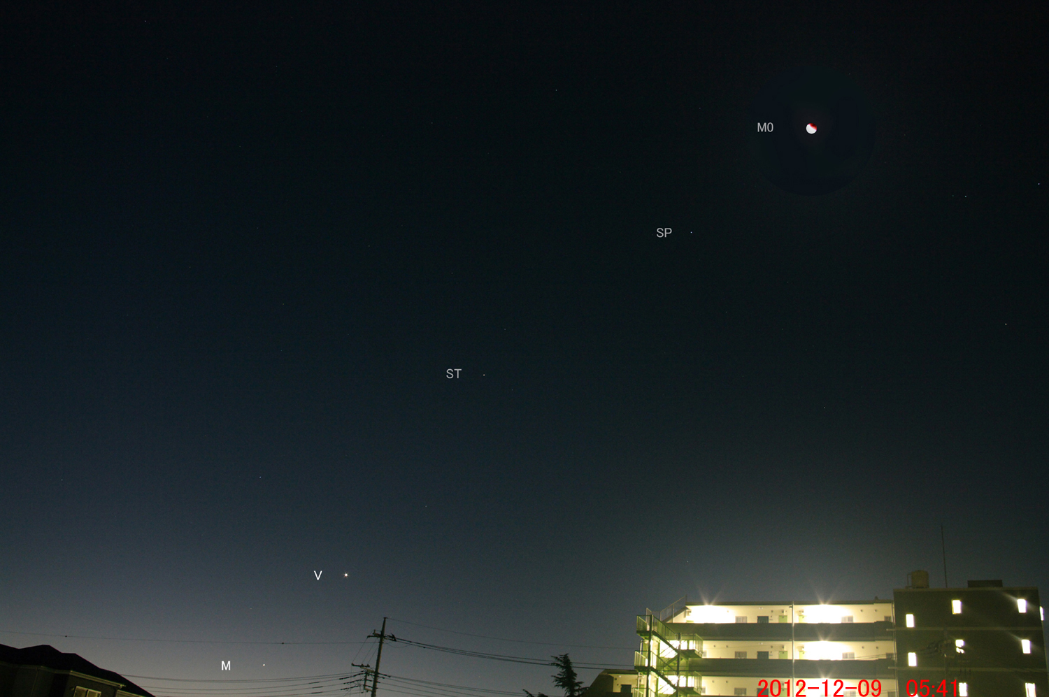 並んだ惑星と月におまけのスピカ 先日に続いて(先日分手違いで削除)今朝(9日)も、早起きして、惑星たちの並びを撮影しました。 ただ横着をして自宅まえでの撮影です。 でも、狙いは全て入ったので良かったでした。 お月さんは、お月さんの部分だけ、余りにも輝度が違うのでを補正しました。 共有: クリックして X で共有 (新しいウィンドウで開きます) X Facebook で共有するにはクリックしてください (新しいウィンドウで開きます) Facebook いいね 読み込み中… 関連