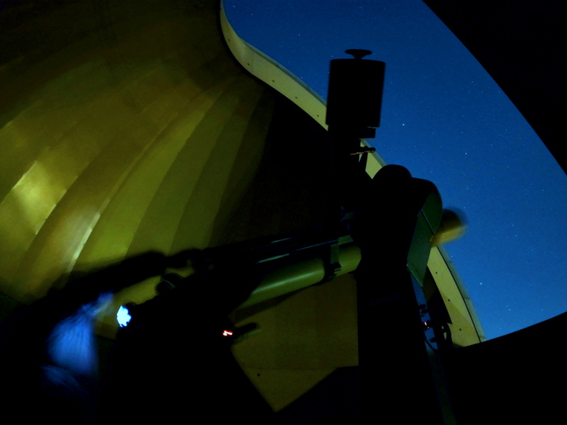 写真は、皆さんが帰った終了後に、第三回開催のテーマを検討してオリオン大星雲に望遠鏡とカメラを向けているところです。