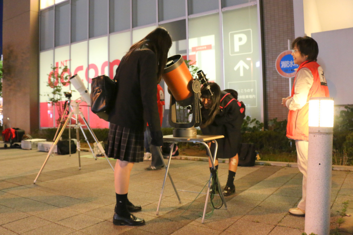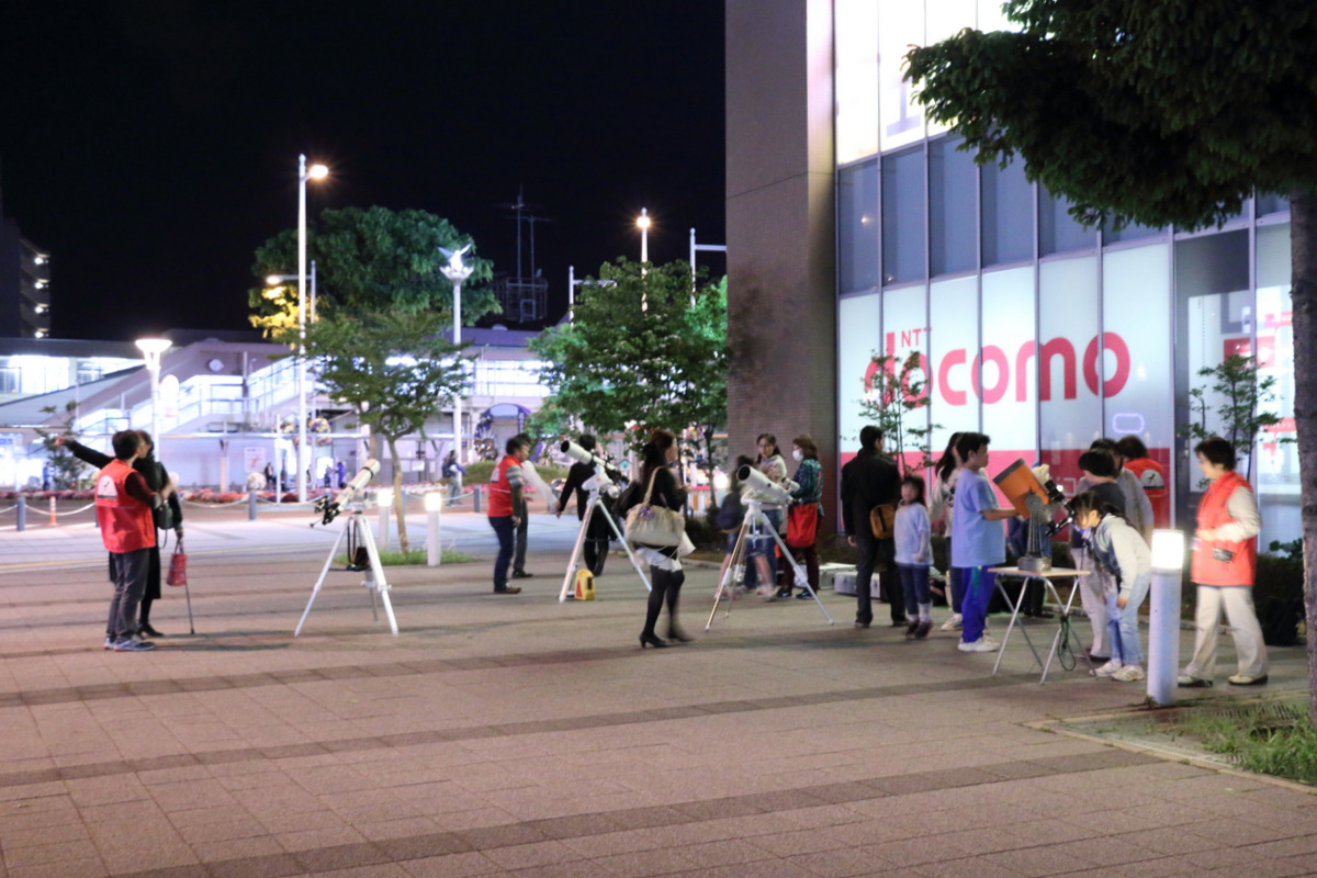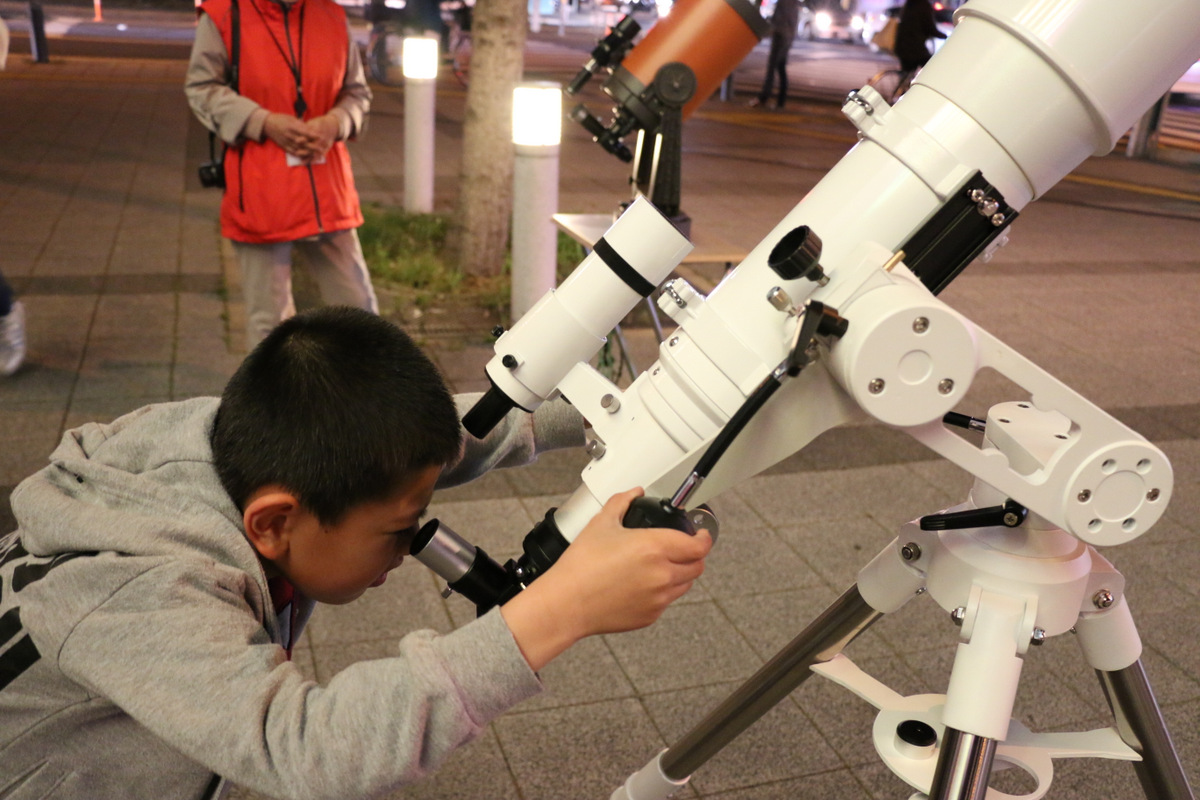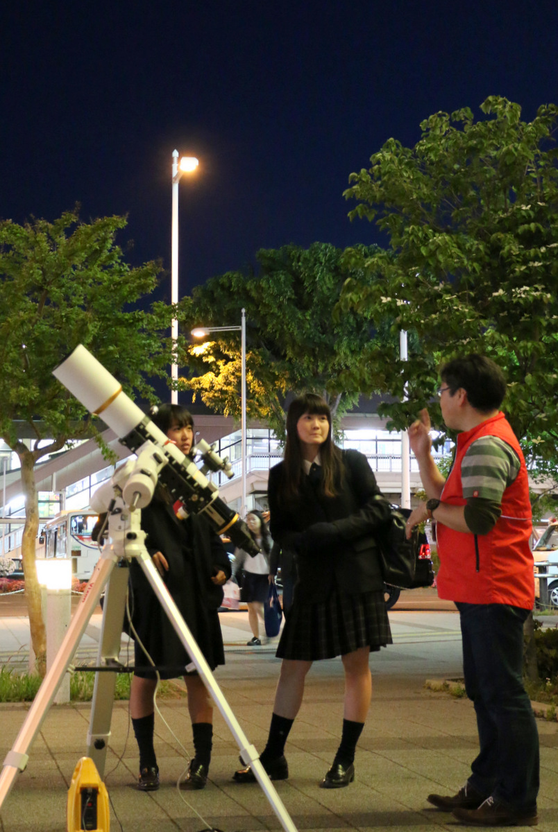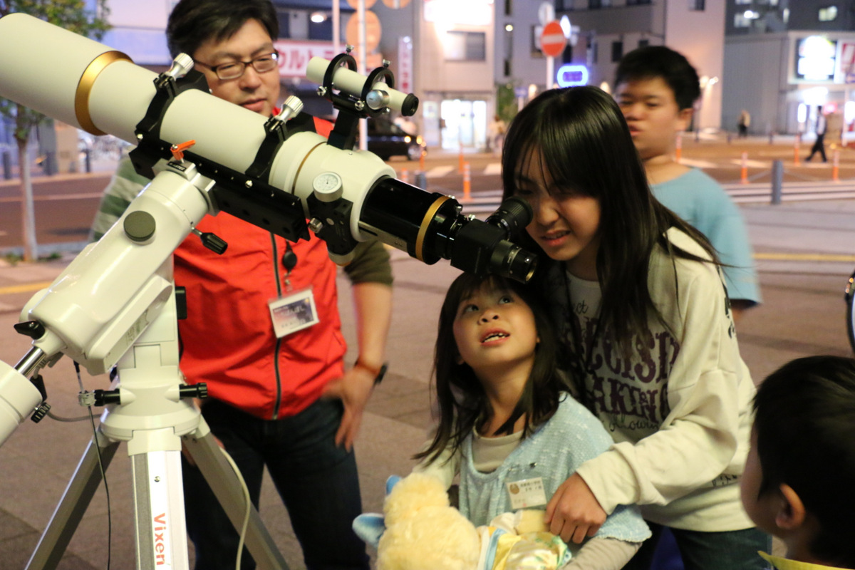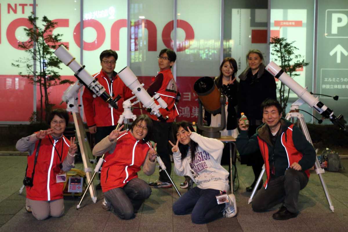 2014年5月10日鴻巣駅前観望会 5月10日の駅前観望会の様子です。 好天に恵まれ、たくさんの方々と一緒に、星空を眺めました。 今回は、木星、月、火星、土星などを観測しました。 見事な夕焼けとともに日が暮れました。 日暮れ後の空には、明るく輝く木星と月、火星、うしかい座のアークトゥルス、そしておとめ座のスピカと、豪華な顔ぶれ。 わかっていてもやってみたくなる。 ↓これ、上の少年の4年前の写真。とっても頼もしくなりましたね。↑ 左はコンデジを使ったコリメート撮影。右は。。。? 火星の導入は任せてください。 上の望遠鏡では、こんな月が見えています。 共有: X で共有 (新しいウィンドウで開きます) X Facebook で共有 (新しいウィンドウで開きます) Facebook いいね 読み込み中… 関連
