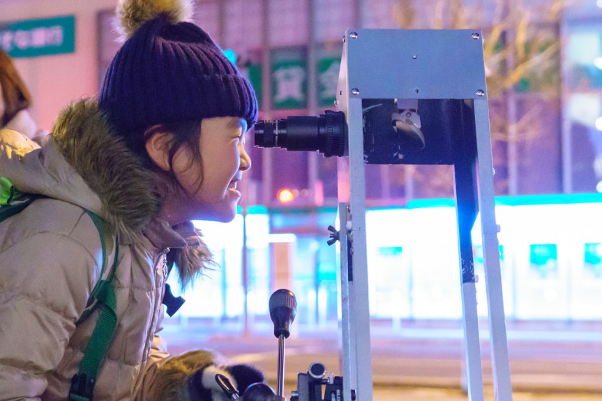 一年で最も寒い季節にも関わらず、近所や遠方から足を運んでくれたご家族、通りがかりの方々とともに、月や星座を観測しました。