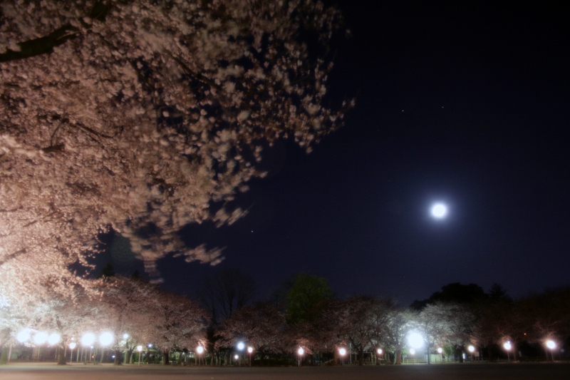 4月2日の深夜。 ぼんぼりは一晩中点いているようですよ☆