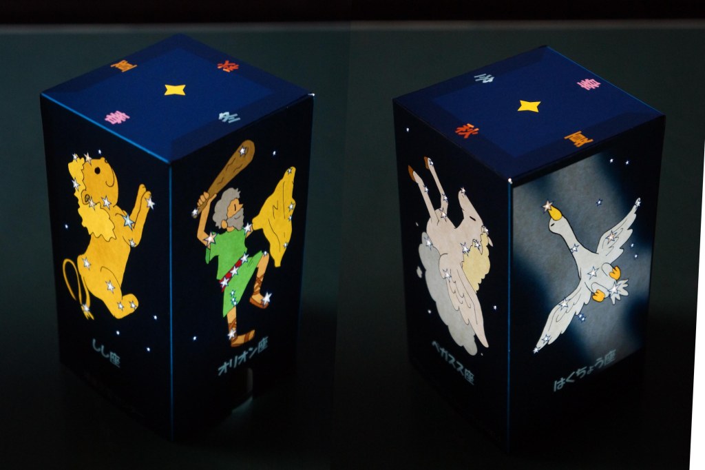 星座ランタンは、いちばんぼし会員が描いた四季の星座絵バージョンと、アストロアーツのステラナビゲーターで出力した全天星図を利用したバージョンの2種類があります。