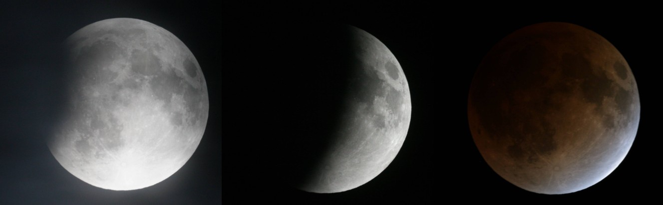 深く考えずに左から並べましたが、地球の影と月の位置関係からすれば、逆の方がわかりやすかったかも。