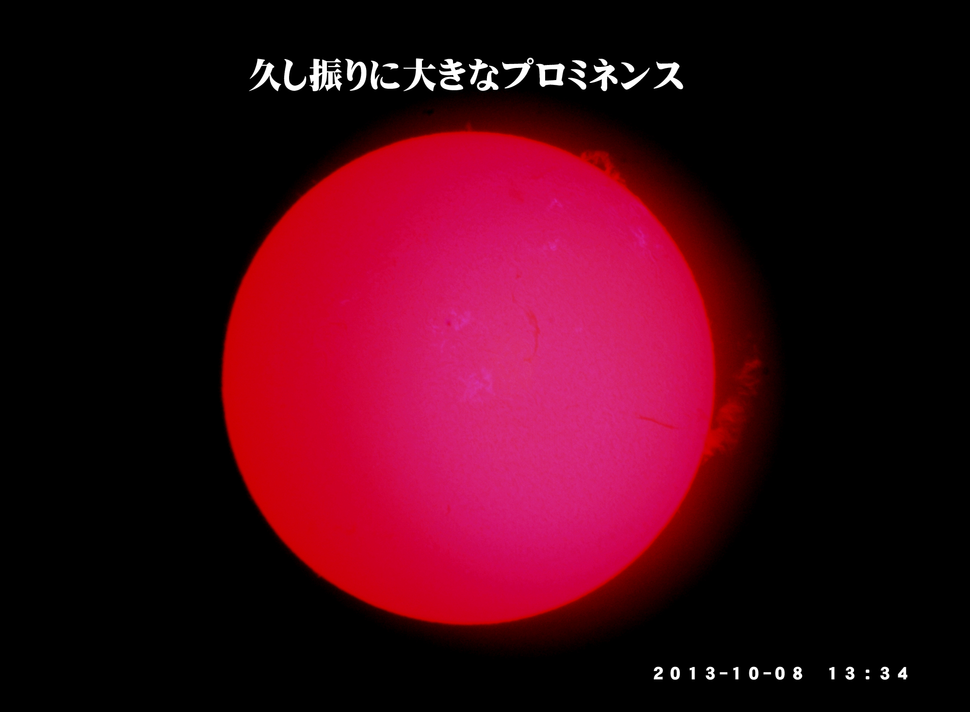 Hαでの画像で、右上の一群の黒点に挟まれた、白い斑点が見えるのがフレアの名残りみたいです。