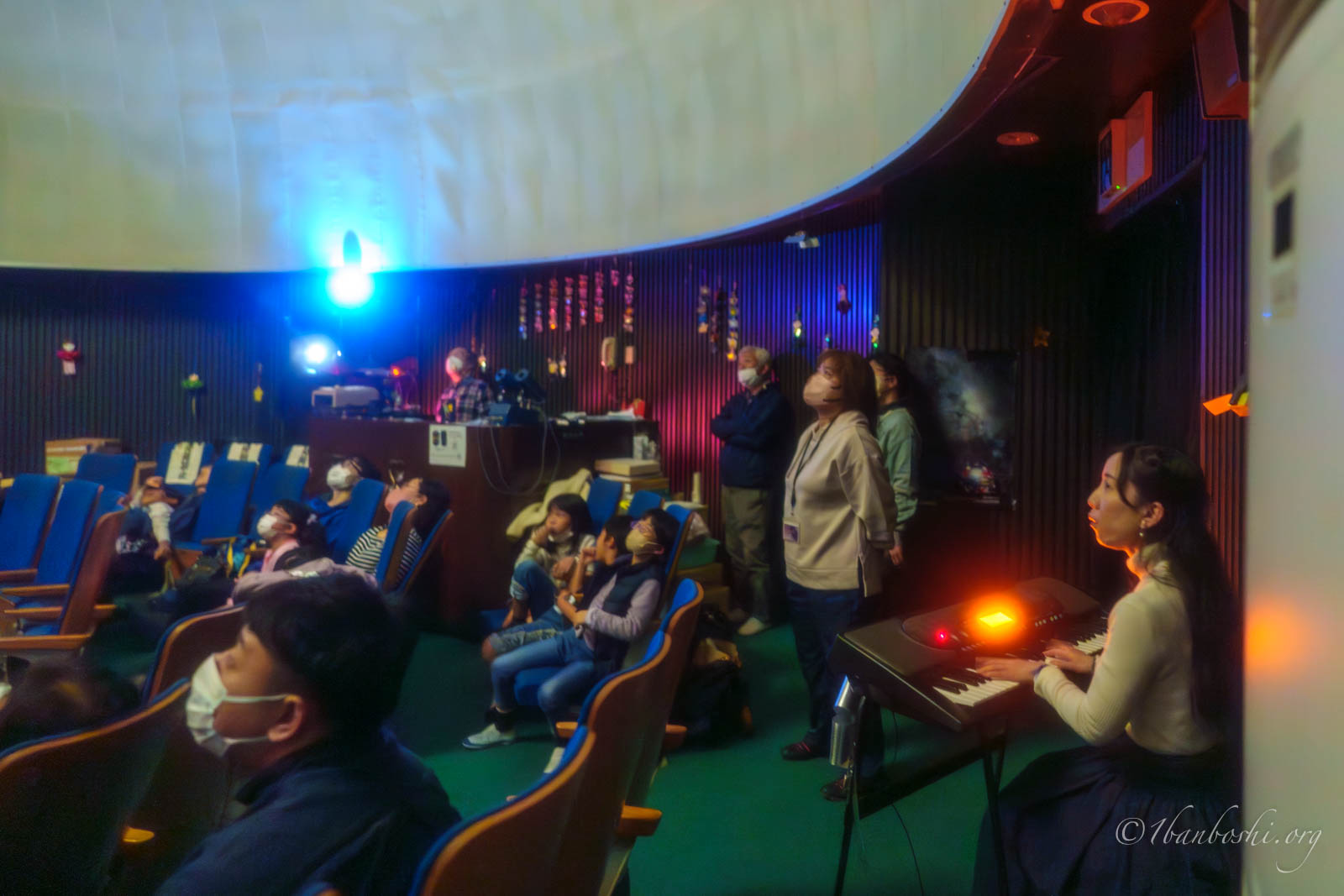 曇天のため、プラネタリウムドームでじっくり天文の話題をお楽しみいただきました。