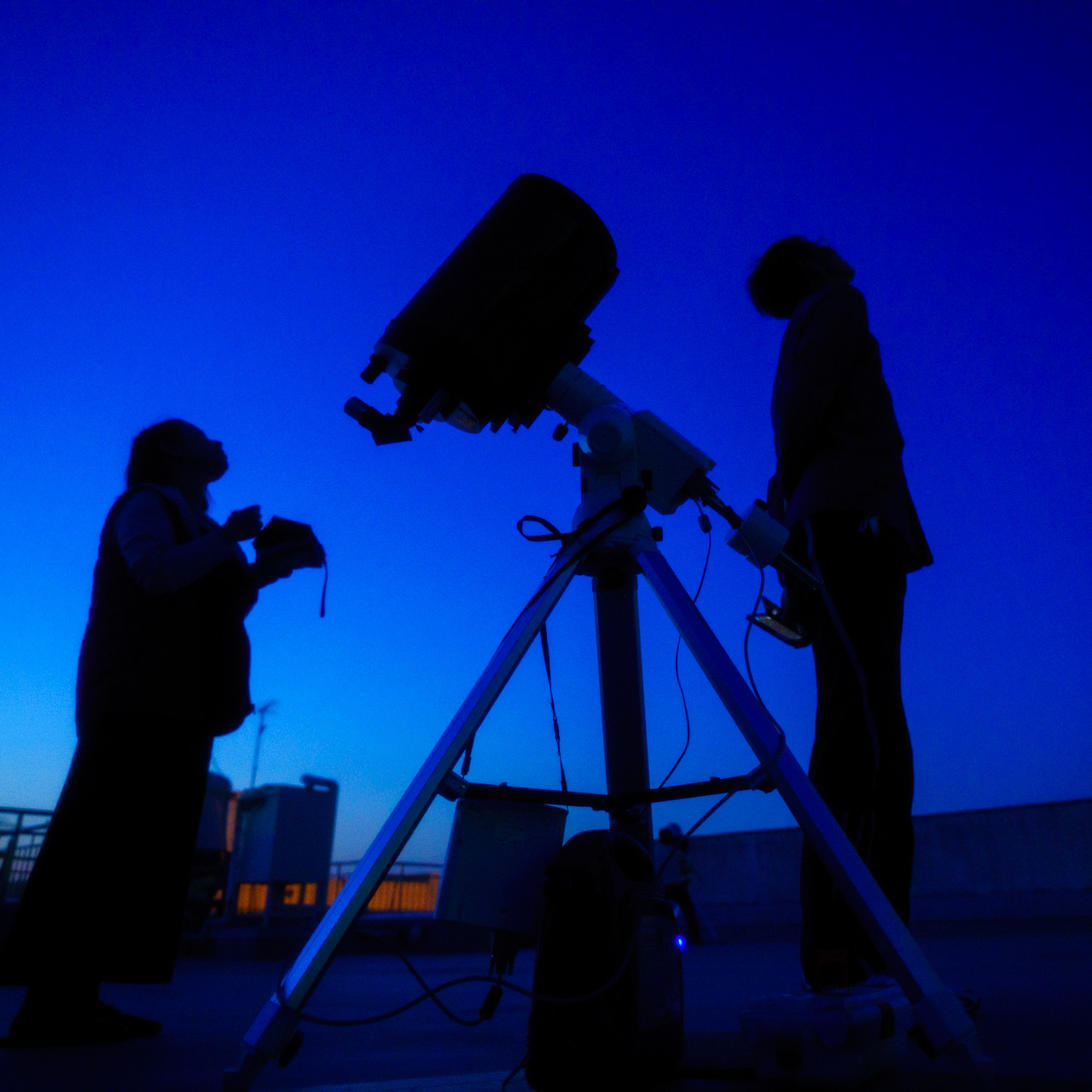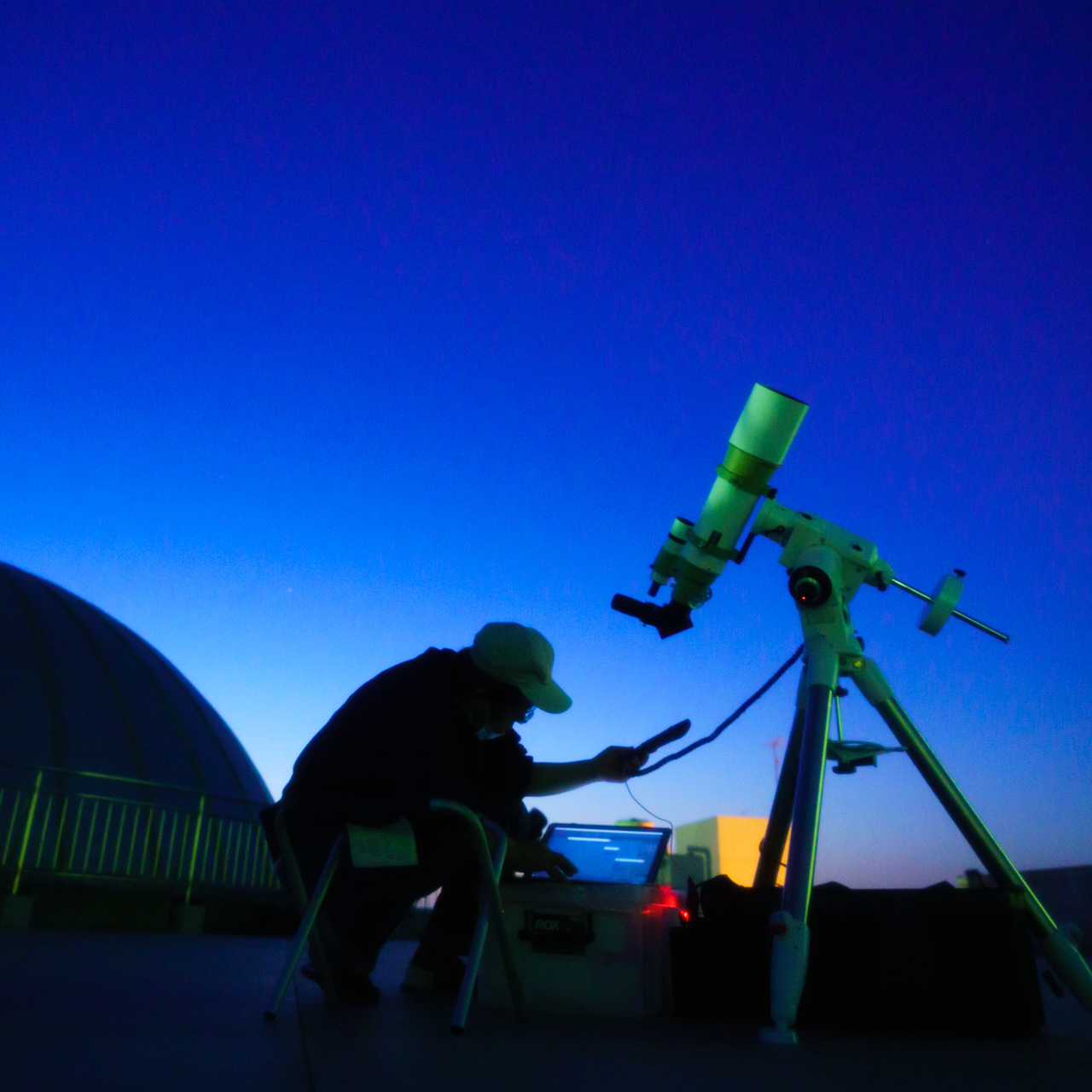 屋上、天文ドームでの観測