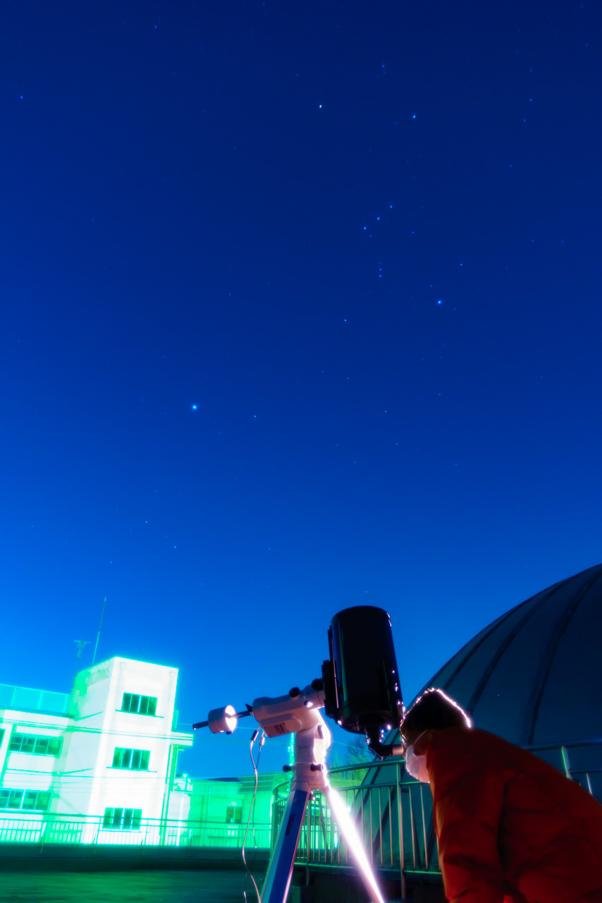 講義の後は、班に分かれて、望遠鏡でM42オリオン大星雲を観測