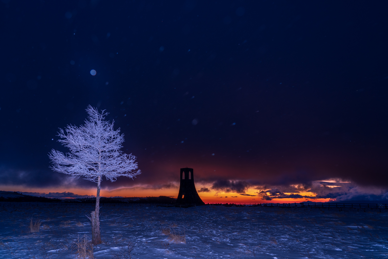 夜半には雲が広がってしまいましたが… 湿った空気が霧氷を作ります