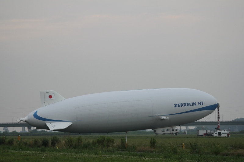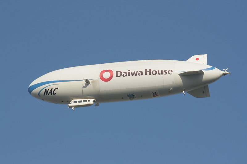 船体には空気よりも軽いヘリウムガスが入っているのでプカプカ浮いています。