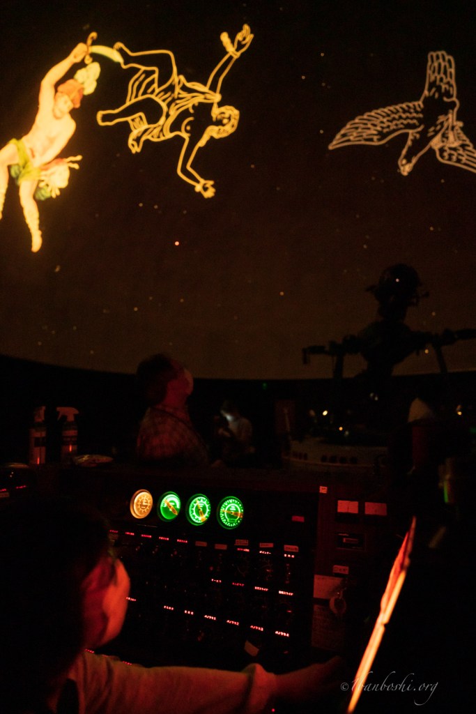 Mitakaの星座絵で、大まかな位置を調整した上で、光学プラネタリウム投影機(MS10)の星にあわせて微調整する手順で、作業します。